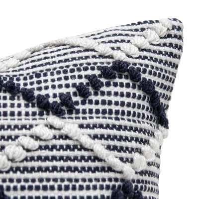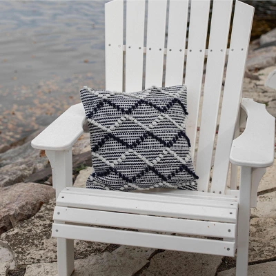 With its classic blue and white textural accents, the raised yarns create a diamond pattern. This blue and white pillow from Foreside Home & Garden is a radiant and relaxing statement. The modern aesthetic of this pillow brings a soothing style to your home. Suitable for both indoor and out and made of recycled PET plastic and quality you can feel. Hand woven by artisans in India.