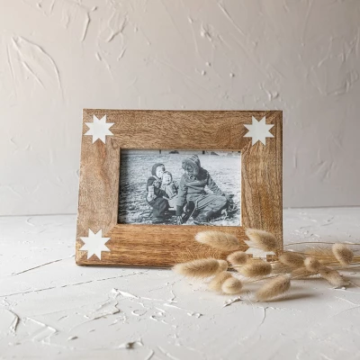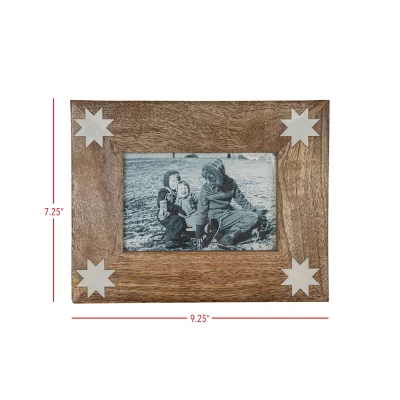 Display your cherished memories with this picture frame exclusively from Foreside Home and Garden. The sustainable mango wood frame features a barn quilt star icon in white resin inlay at each corner, a cottage core design inspired by vintage quilt patterns. Add a unique farmhouse flair to any space with this 4×6 photo frame.