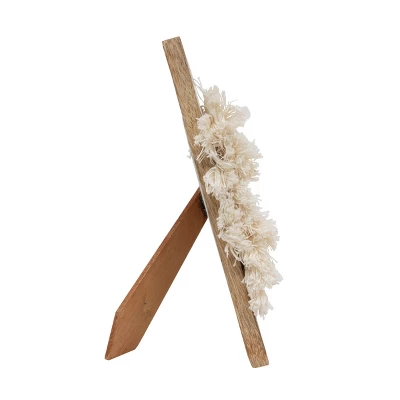Exclusively designed by Foreside Home & Garden, this 5×7 picture frame is the perfect addition to your boho home decor. The sustainable natural mango wood paired with the white cotton give this piece a soft and natural boho vibe. Featuring hand attached cotton tassels that fringe out from the sides of the frame to create a textural dream. The glass front will help to protect your photo from dust and other damage. This piece will look great placed on your shelf, desk, side table or mantel for a versatile display anywhere in your home.