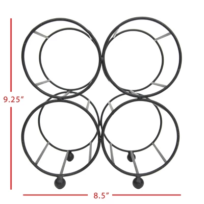 Simple and refined, bold yet airy. Foreside Home & Garden offers a modern farmhouse aesthetic for storing four of your favorite bottles of wine. Crafted from metal wire in a matte black finish, elevated by four subtle ball feet, you will want to give this piece a permanent spot on your countertop.