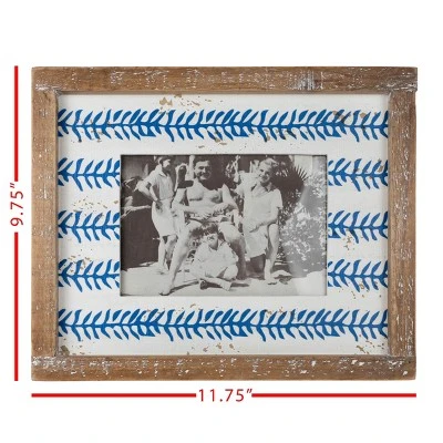Display your favorite memories in vibrant style with the 5×7 picture frame from Foreside Home & Garden. A natural wood border softens an inset white frame with an indigo botanical pattern printed over top. This lovely photo frame features a classic blue and white color combination that infuses a beautiful pop of color to accent your favorite photo. This piece will add just the right amount of detail to your boho aesthetic.