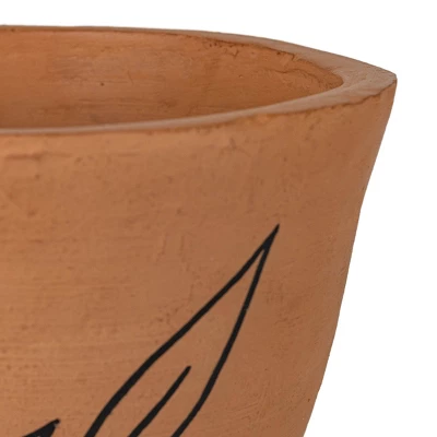 Terracotta clay is rich in color and texture in its natural state. To further that texture on this terracotta planter there is a beautifully simplistic black wildflower drawing that is hand painted by artisans in India. Hand thrown terracotta brings out the beauty of this perfectly handcrafted pot. This piece is sure to add a traditional boho flair to your home, while also offering a trendy base for your favorite plants.