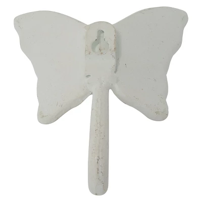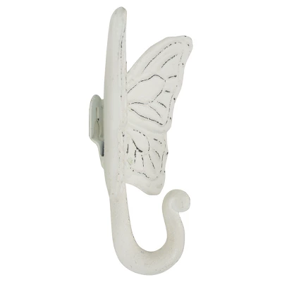 - Distressed matte white finish with charcoal undertones enhances the cast details of this wall hook.