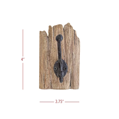 Welcome to your cozy minimalist entryway! This rustic cast iron hook is the perfect addition to your front hallway decor. The matte black finish of the hook is contrasted by the warmth of the natural wood it is mounted on. Inspired by found driftwood pieces the wood is organically shaped, offering a look that will enhance your entryway or mudroom decor. Welcoming in style, this wall hook is a great size for small accessories and light jackets.
