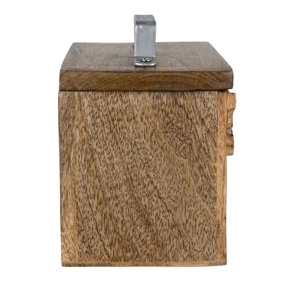 From Foreside Home & Garden, this natural wooden trinket box is perfect for storing all your smallest treasures. Made from sustainable mango wood, the box is characterized by a flourishing embossed pattern inspired by French baroque stylings. The lid is topped with a silver metal handle for added functionality. Easily transition this look throughout areas of your home as a simple decorative accent or for functional organization.