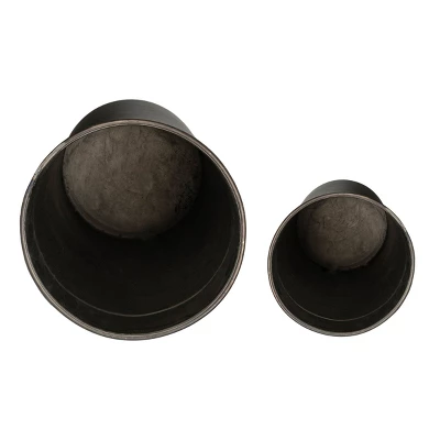 This set of baskets from Foreside Home & Garden have a luxe matte galvanized finish, composed of warm charcoal and bronze undertones. There are two loop handles at the sides of each basket. The two-piece set includes a small and a large basket that can be the perfect addition to your rustic style home. The warm, luxurious look of these baskets is complemented by tall floral displays or greenery.