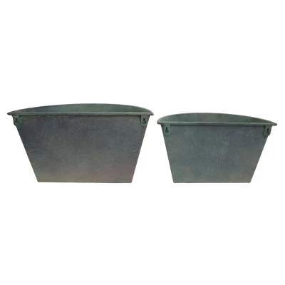 Give your favorite plants the home they deserve with this set of two cottage style wall planters from Foreside Home & Garden. These stunning patina metal planters feature a beautiful, antiqued bronze base with brushed turquoise over the top, enhancing their elegance. Their unique shape and dimensional finish allow them to stand out among the rest of your decor, especially when paired with sprawling greens or bold florals.