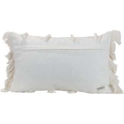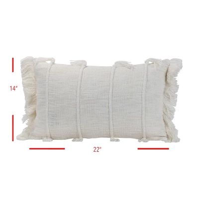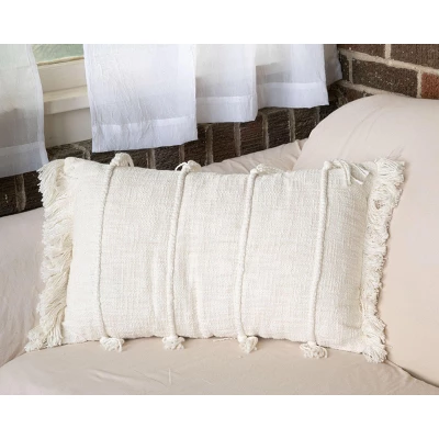 Hand woven by artisans in India, create a subtle statement on your bed or sofa with our lumbar sized 14 x 22 inch decorative cotton throw pillow. Its natural palette and slub cotton fabric suits any style. Soft textural stripes, fringe trim and playful tassels make this a casual addition to any space.