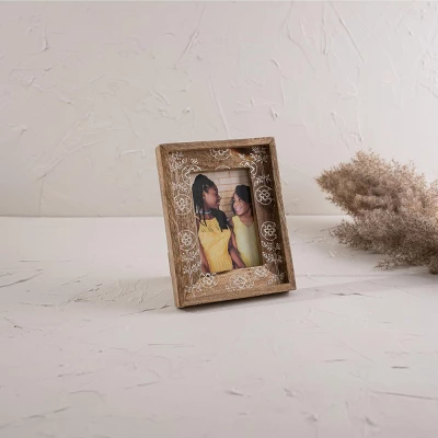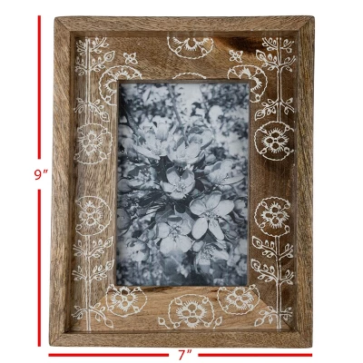 A 4×6 cottage inspired photo frame from Foreside Home & Garden is the perfect addition to your decor. The beautiful natural tones of mango wood paired with the folk-art style, white floral design creates a playful frame for your favorite photo memories. Transitional accent for your shelf, desk, side table, mantel, or hung on a wall for a versatile display anywhere in your home.